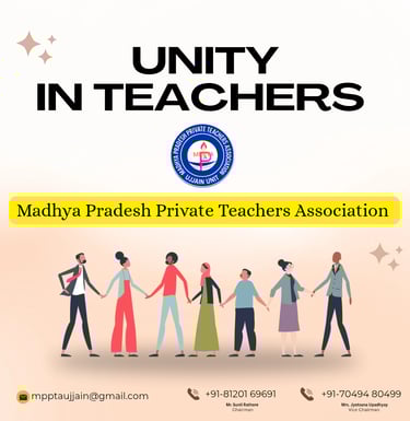 MPPTA Ujjain is an association dedicated to supporting private teachers. It helps teachers who face genuine issues from school authorities or management by providing guidance, representation, and assistance to protect their rights and resolve problems fairly.